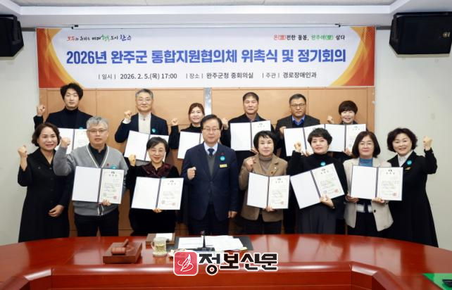지난 5일 완주군은 군청 중회의실에서 ‘완주군 통합지원협의체’ 위촉식을 열고, 제1차 정기회의를 열어 ‘2026년 통합돌봄사업 실행계획(안)’을 심의·의결했다.