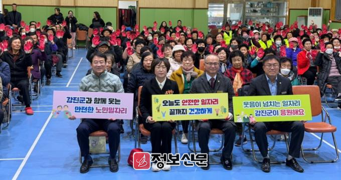 강진원 강진군수는 축사를 통해 “노인일자리 사업은 어르신들의 소득 지원을 넘어, 지역사회와 함께 활력을 만들어가는 중요한 정책”이라며 “무엇보다 중요한 것은 안전인 만큼, 오늘 함께 다짐한 안전수칙을 일자리 활동 기간 동안 반드시 지켜주길 바란다”고 말부했다.