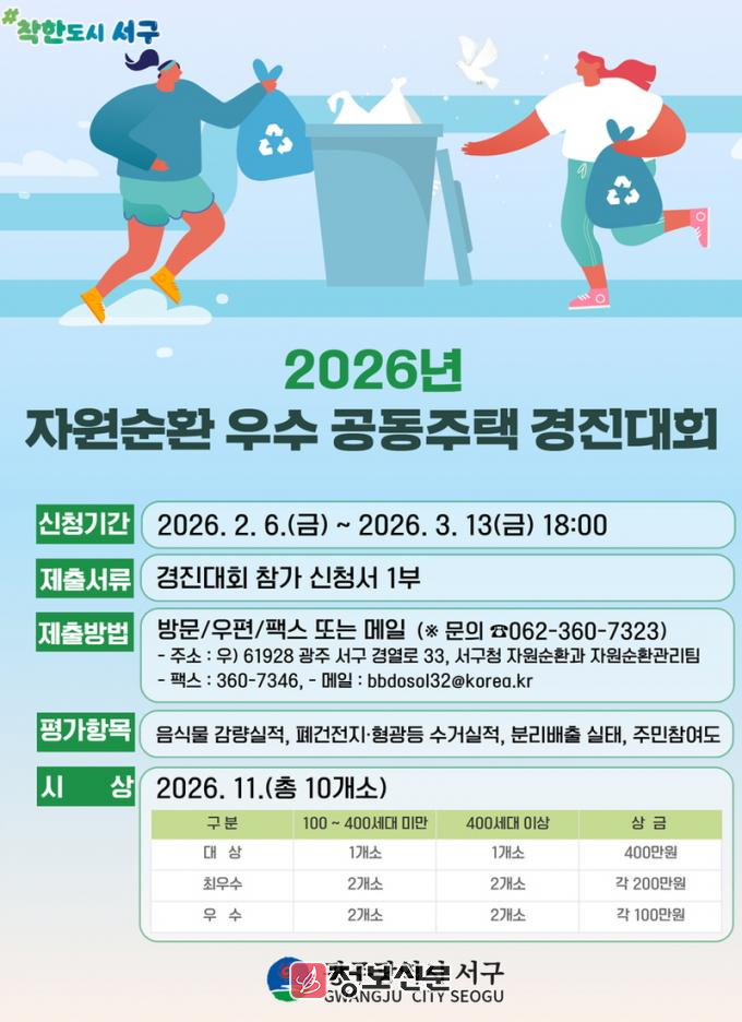 ![]() 광주시 서구, 2026년 공동주택 자원순환 경진대회 개최 |