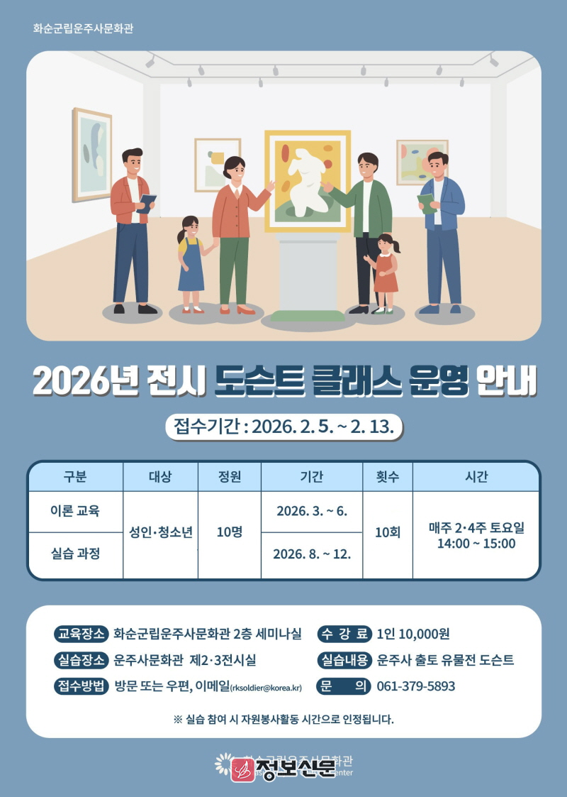 ![]() 화순군립운주사문화관, ‘2026년 도슨트 클래스’ 수강생 모집 |