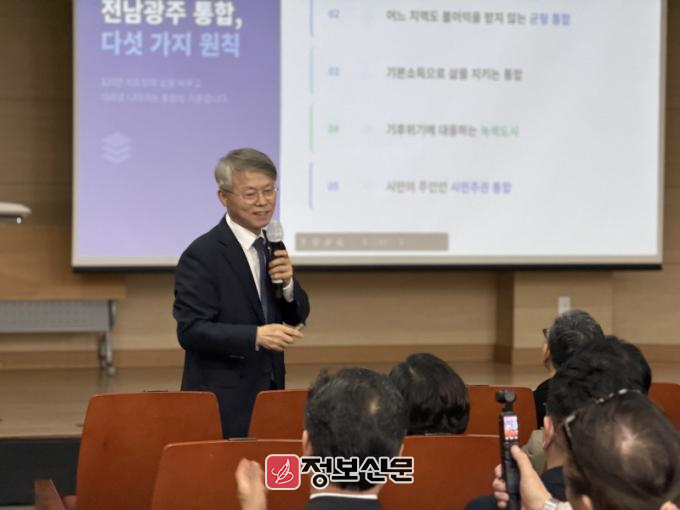 민 의원은 이날 순천대학교 파루홀에서 열린 경청투어에서 “서울보다 살기 좋고, 일자리가 있어 청년들이 서울로 가지 않아도 되는 세계 최고의 도시를 만드는 것이 통합특별시의 지향점”이라며 “시민의 합의가 기록된 ‘전남·광주 통합 설계도’를 함께 만들어가기 위해 경청투어를 시작했다”고 밝혔다.
