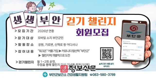 ![]() 부안군, 생생부안 걷기 챌린지 참여자 모집 |