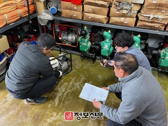 점검반은 읍·면사무소에서 보관 중인 한해장비 양수기 51대(엔진형 41대, 전기모터 10대)를 대상으로 작동 상태와 주요 부품 이상 여부를 집중 점검하고, 현장에서 즉시 정비가 가능한 장비는 보완 조치를 완료했다.
