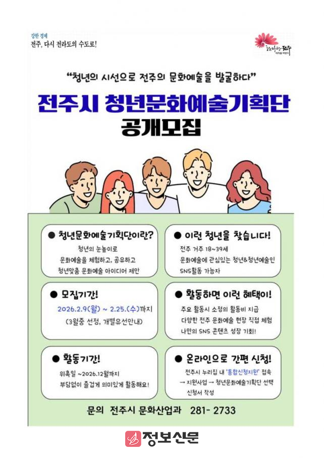 ![]() 전주시, ‘청년문화예술기획단’ 공개모집 |