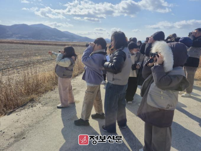 이날 프로그램은 탐조 전문가의 해설을 들으며 쌍안경으로 흑두루미, 왜가리, 민물가마우지 등 철새와 텃새를 관찰한 뒤, 자연물을 활용한 콜라주 기법의 ‘새 그리기 미술 활동’으로 이어졌다.