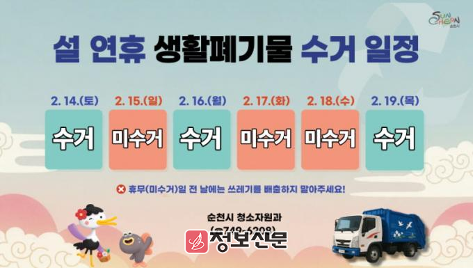 ![]() 순천시, 설 연휴 생활폐기물 수거 일정 안내 |