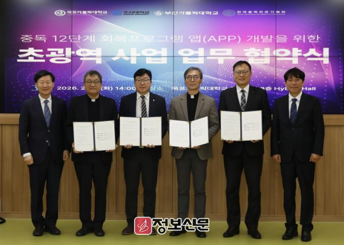 목포가톨릭대학교는 지난 10일 교내 꿈토피아에서 조선대학교, 부산가톨릭대학교, 한국중독전문가협회와 함께 ‘중독 12단계 회복프로그램 앱 개발을 위한 초광역 사업 업무협약’을 했다.
