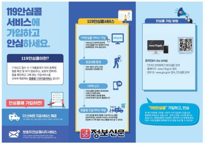 ‘119안심콜’ 서비스는 누리집(u119.nfa.go.kr)에서 간편하게 가입할 수 있으며, 가까운 소방서를 방문해 등록할 수도 있다. 본인뿐만 아니라 보호자가 대리 등록할 수 있고, 한 번 등록하면 전국 어디서든 119 신고 때 등록 정보가 연계돼 보다 정확하고 신속한 구급 서비스를 받을 수 있다.