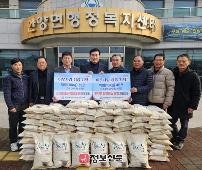 이번 기부는 안양면라이온스클럽이 48포, 조사모가 32포를 각각 후원한 것으로, 지역 내 어려운 이웃들에게 따뜻한 온정을 전하고자 마련됐다.