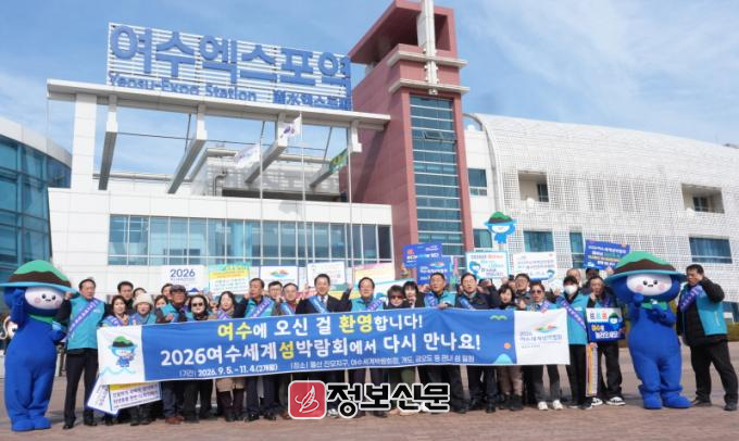 ![]() 김영록 전라남도지사가 설 명절을 앞둔 16일 여수엑스포역에서 귀성객 및 관광객들을 환영하며, 2026여수세계섬박람회 성공개최를 위한 D-200 홍보활동을 펼치고 있다. |