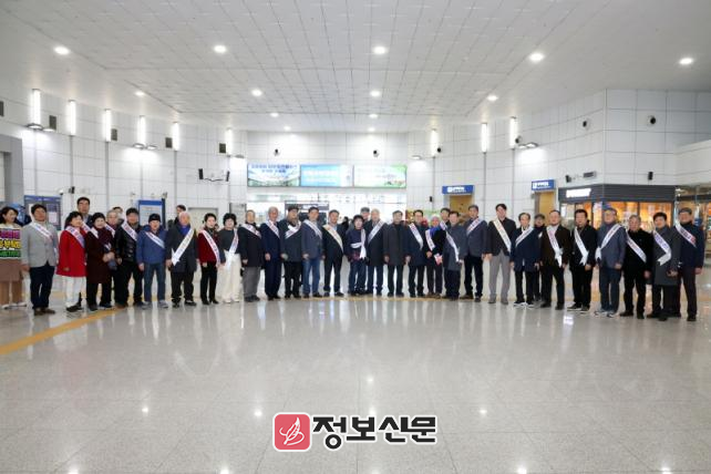 정읍시애향운동본부(이사장 김적우)와 정읍시는 15일 정읍역 대합실에서 귀성객들에게 고향의 정을 나누는 환영 행사를 열었다. 이날 행사에는 이학수 시장과 박일 시의회 의장 및 시의원, 정읍시애향운동본부 임원, 관계 공무원 등이 함께해 귀성객들을 반갑게 맞이했다.