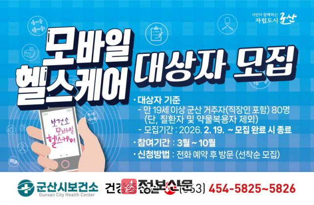 ![]() 군산시보건소, 모바일 헬스케어 사업 참여자 모집 |