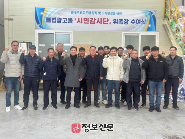 시는 지난 12일에 위촉식을 열고 시민감시단원으로 선발된 17명에게 위촉장과 감시단증 수여 및 기념 촬영을 진행했다. 이후 △광고물의 적법한 표시 기준 △불법 광고물 정비 절차 △철거 과정에서 발생할 수 있는 안전사고 예방 요령 등 효율적인 활동을 위한 직무 교육이 실시됐다.