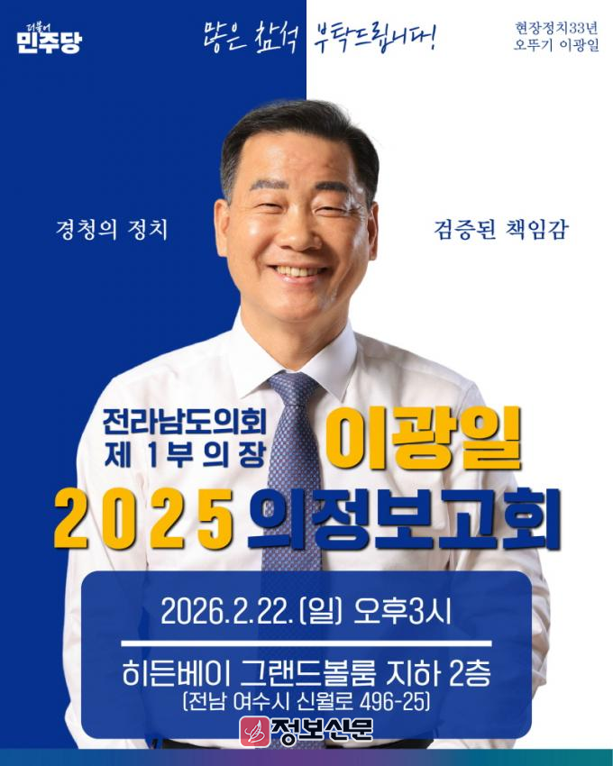 ![]() 이광일 전라남도의회 제1부의장, 의정보고회 2월 22일 개최 |