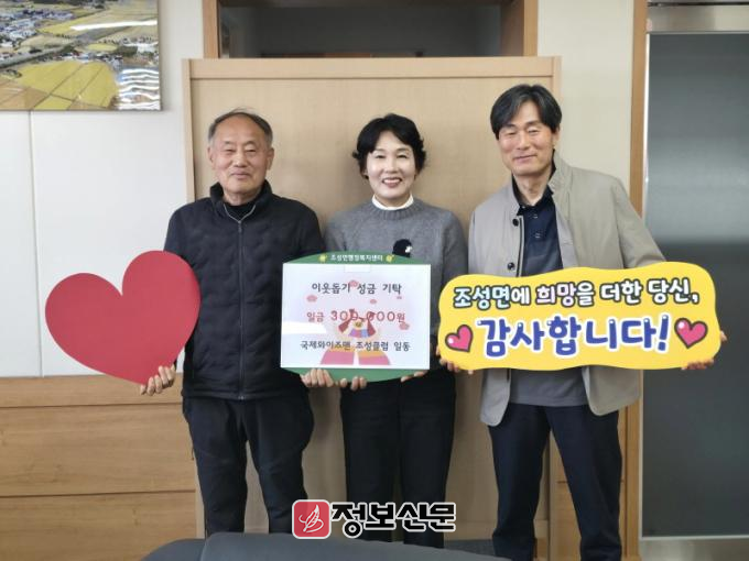 정인숙 조성면장은 “꾸준히 어려운 이웃을 위해 잊지 않고 애써주시는 마음에 깊이 감사드린다.”며 “기탁해 주신 성금은 도움이 필요한 가구에 소중히 전달될 수 있도록 효율적으로 운용하겠다.”라고 전했다.