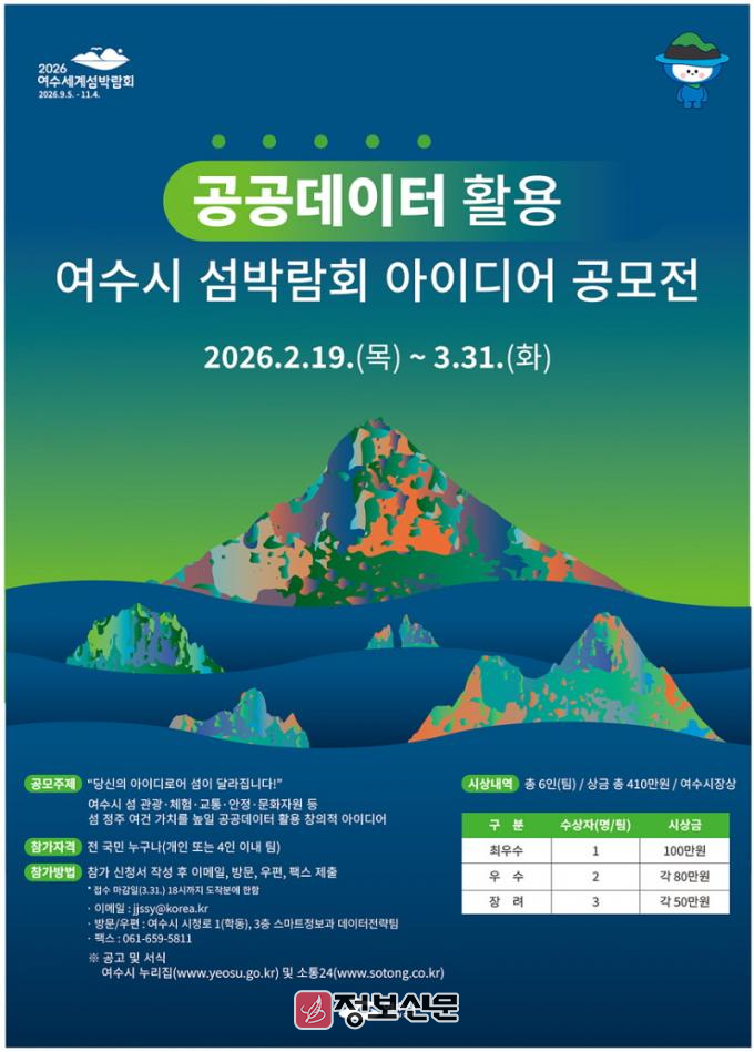 ![]() 여수시, 공공데이터 활용 섬박람회 아이디어 공모전 개최 |