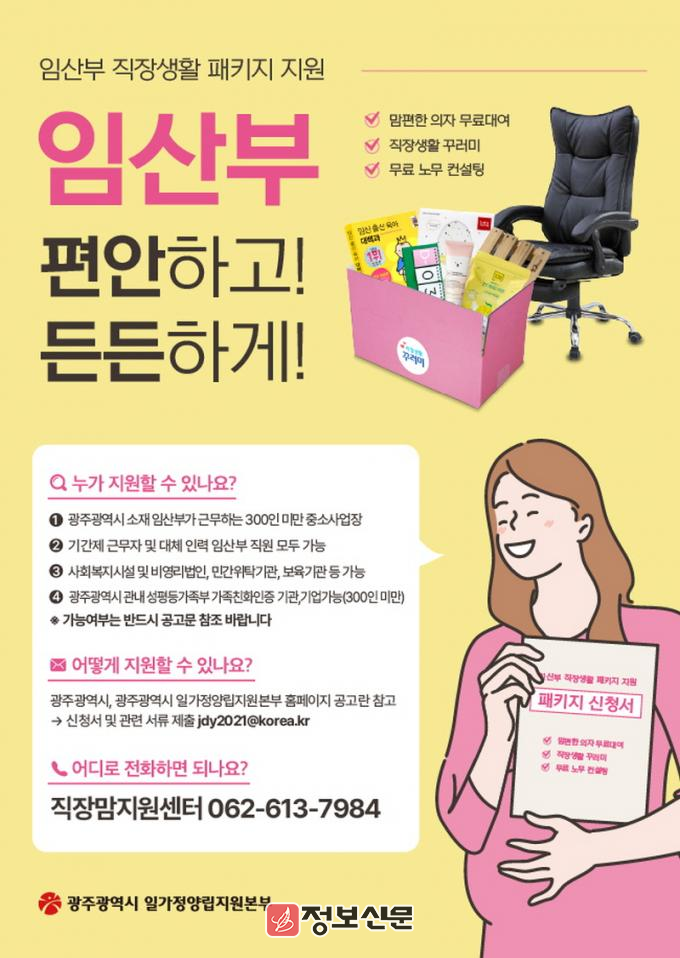 ![]() 광주광역시, 임산부 맞춤형 직장 생활패키지 지원사업 추진 |