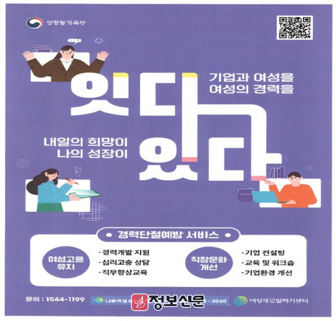 나주시는 지역 여성의 지속 가능한 고용 유지와 일하기 좋은 직장 환경 조성을 목표로 여성과 기업을 대상으로 한 맞춤형 경력단절 예방 서비스를 강화한다고 19일 밝혔다.