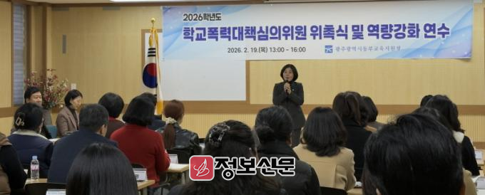 광주동부교육지원청은 19일 광주시교육청시민협치진흥원에서 관내 학부모·전문가 등 49명을 ‘2026학년도 학교폭력대책심의위원회 위원’으로 위촉하고 직무 연수를 진행했다.