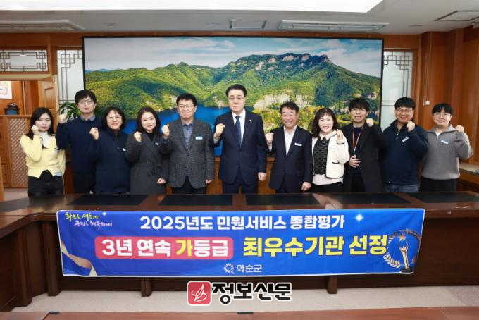 ![]() 화순군, 2025년 민원서비스 종합평가 최우수 ‘가’ 등급 수상 |