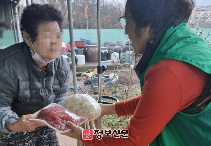 이날 전달된 물품은 떡국떡과 고기 등 300만 원 상당의 식품으로 회원들이 직접 생계가 어려운 어르신 40가구를 방문해 안부를 살폈다.