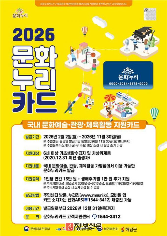 ![]() 해남군, 2026년 문화누리카드 사업 추진 |