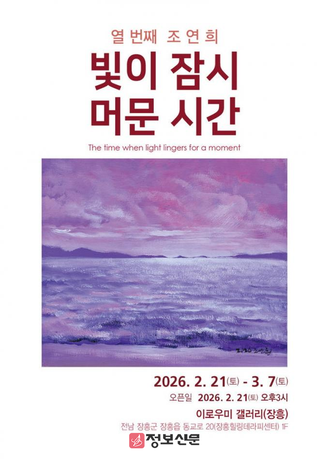 ![]() 장흥군, 조연희 개인전 ‘빛이 잠시 머무는 시간’ 장흥 이로우미 갤러리서 21일 개막 |