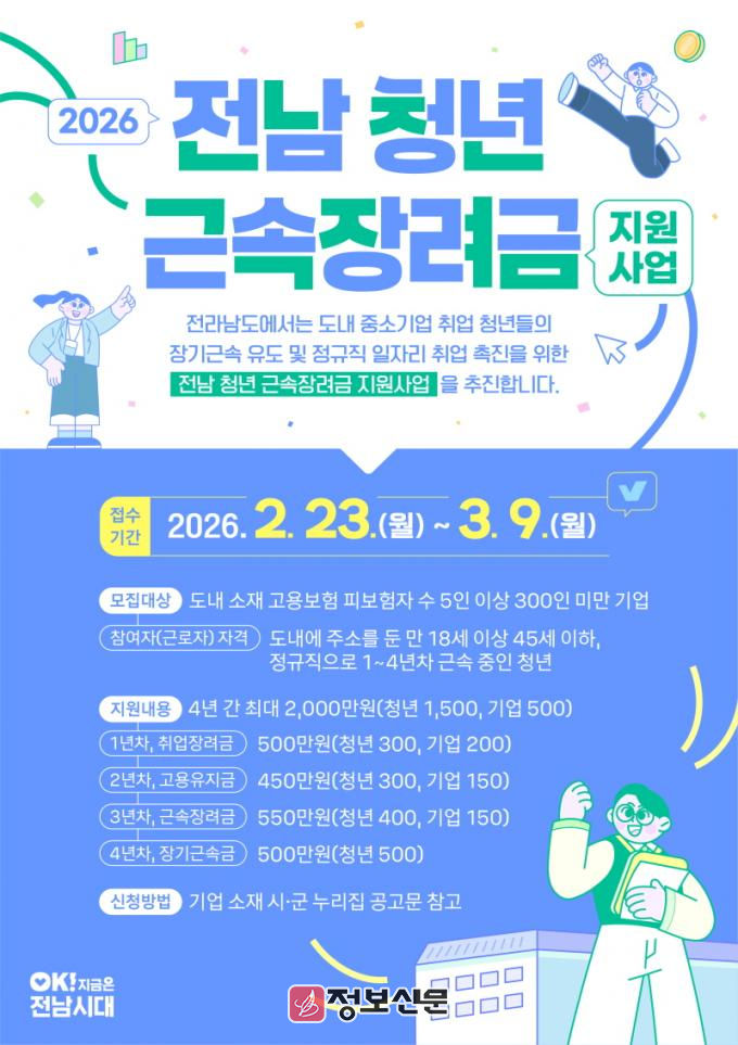 ![]() 전라남도, 청년 근속장려금 지원사업 참여기업 모집 |