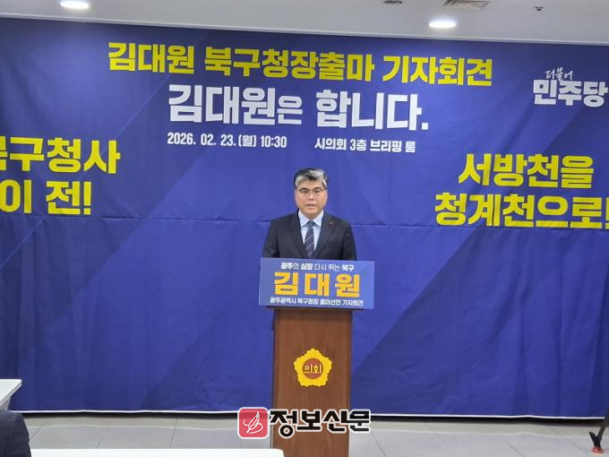 김대원 전 정책실장은 23일 오전 10시30분 광주시의회 브리핑룸에서 기자회견을 열고 "광주의 심장인 북구를 다시 뛰게 하겠다"며 본격적인 선거 행보에 나섰다.