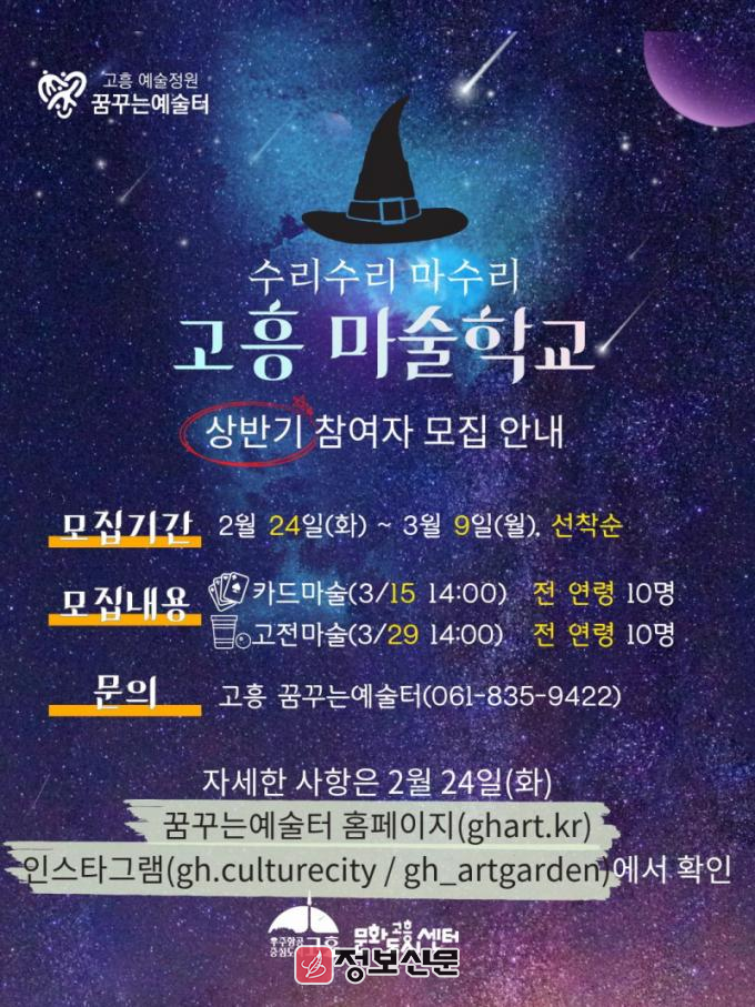 ![]() 고흥군, 융복합 문화예술교육 「고흥 마술학교」 참여자 모집 |