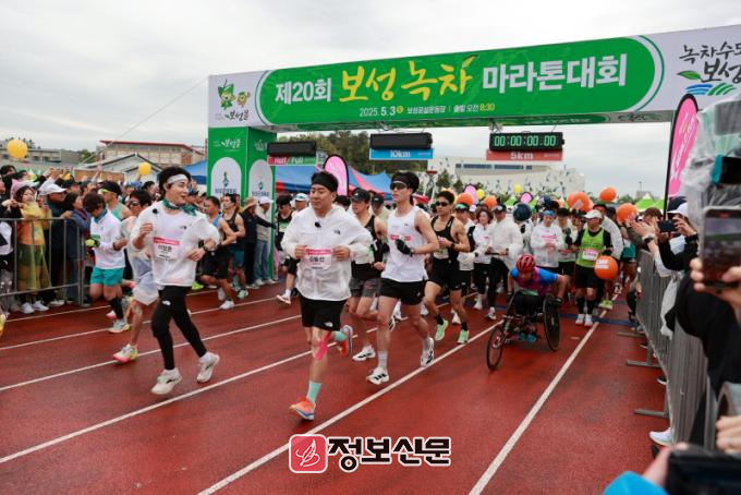 Full, Half, 10km, 5km 순으로 진행되는 보성녹차마라톤대회는 대한육상경기연맹 공인코스이며, 메타세쿼이아 가로수 길과 완만한 경사로 이뤄져 있어 마라토너들에게 최고의 코스로 정평이 나 있다.