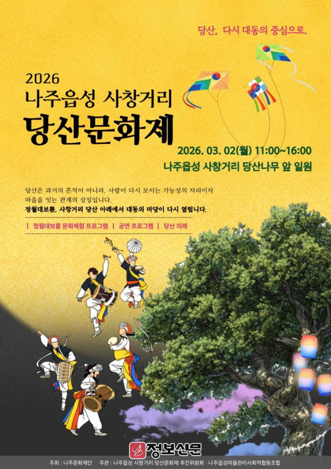 김찬동 나주문화재단 대표이사는 “이번 당산문화제가 시민들이 지역 전통문화의 가치를 되새기고 공동체의 의미를 공유하는 계기가 되길 바란다”며 “앞으로도 원도심 자원을 기반으로 나주만의 문화 브랜드를 지속적으로 확장해 나가겠다”고 밝혔다.