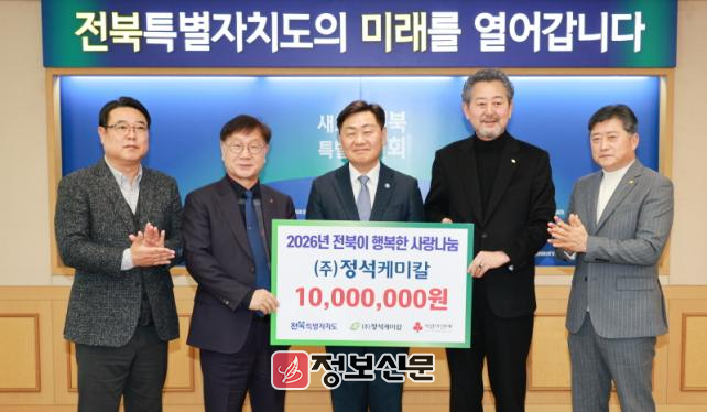 ![]() 전북특별자치도, ㈜정석케미칼 불우이웃돕기 성금 기탁식 개최 |