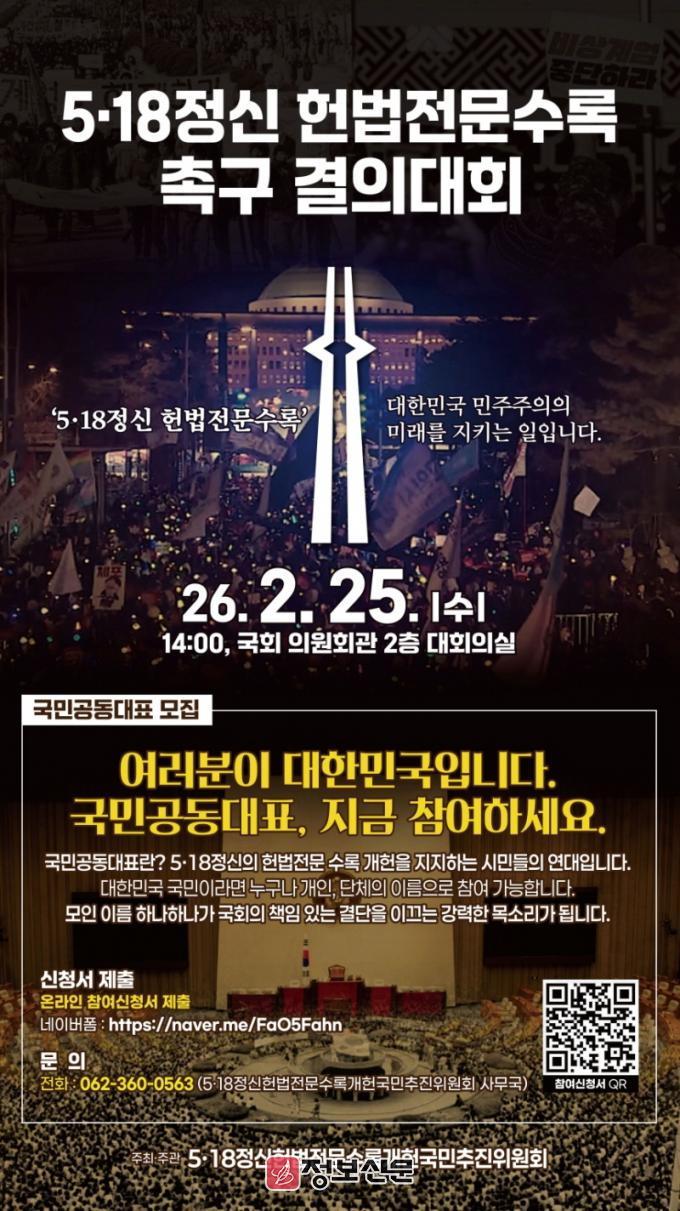 ![]() 광주광역시, 국회서 5.18헌법수록 국민결의대회 개최 |