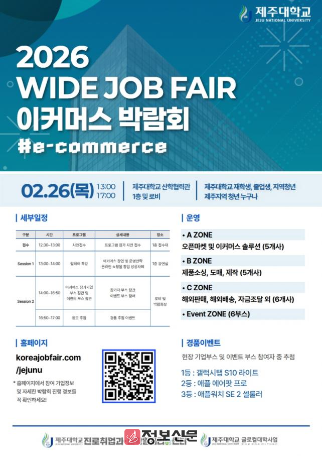 ![]() 제주대학교, 2026 WIDE JOB FAIR 이커머스 박람회 개최 |