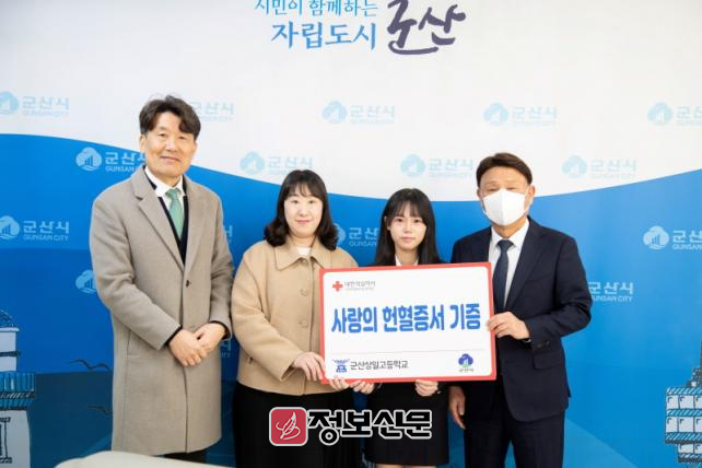 이번 전달은 군산상일고등학교 학생들이 자발적인 헌혈 활동을 통해 모은 헌혈증을 지역사회에 기부하면서 이뤄졌다.