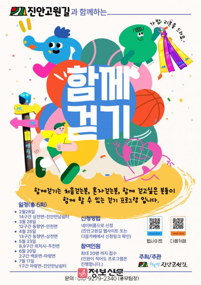 진안고원길 이재현 대표는 “이번 프로그램은 단순히 길을 걷는 것을 넘어 진안의 역사와 자연을 함께 나누며 일상의 활력을 찾는 시간이 될 것”이라며 “회차별 참가 인원이 20명으로 제한되어 있는 만큼 관심 있는 분들은 서둘러 신청해 주시길 바란다”고 전했다.