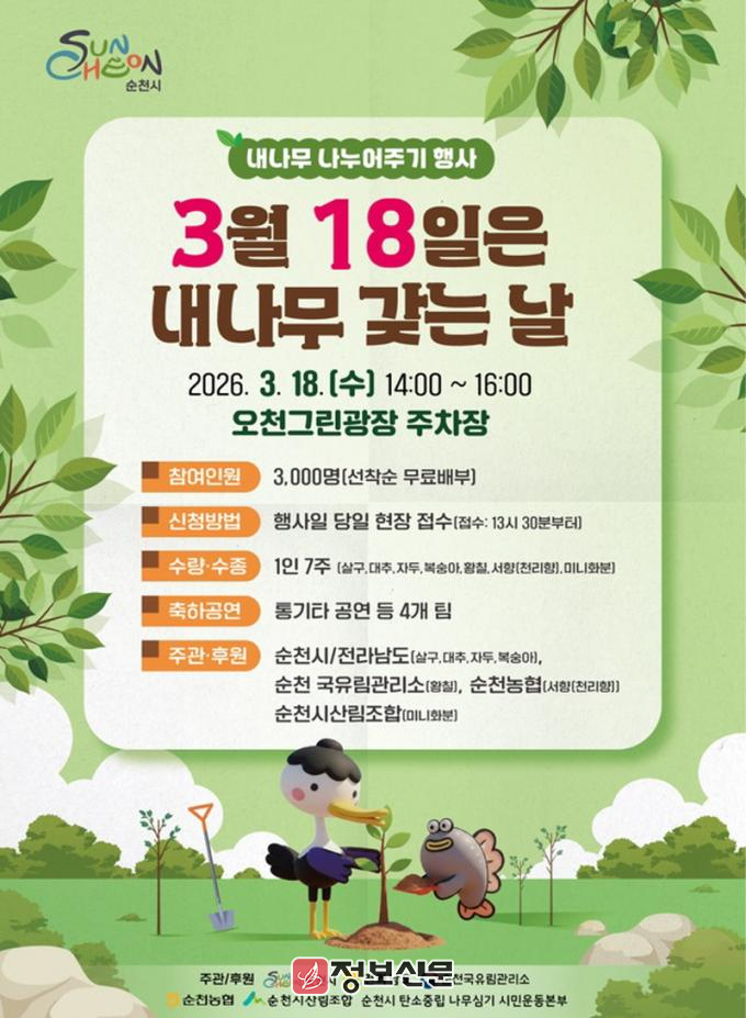 ![]() 순천시, 3월 18일 「내나무 나누어주기 행사」 개최 |