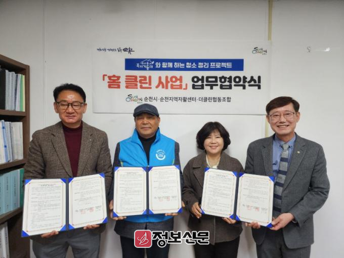 이번 협약에는 순천시, 순천지역자활센터(관장 고연주), 자활기업 더클린협동조합(대표 조일환)이 참여했으며, 거동불편, 돌봄공백, 저장강박 등으로 생활환경 관리가 어려운 가구를 대상으로 맞춤형 청소·방역 및 정리지원을 제공하는 내용을 담고 있다.