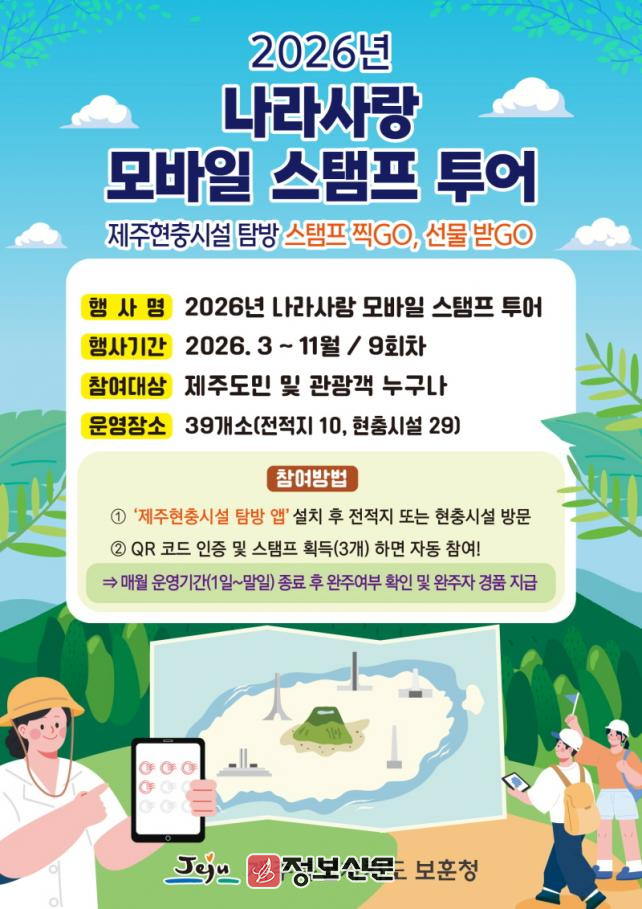 ![]() 제주특별자치도 보훈청, 2026 나라사랑 모바일 스탬프 투어 운영 |