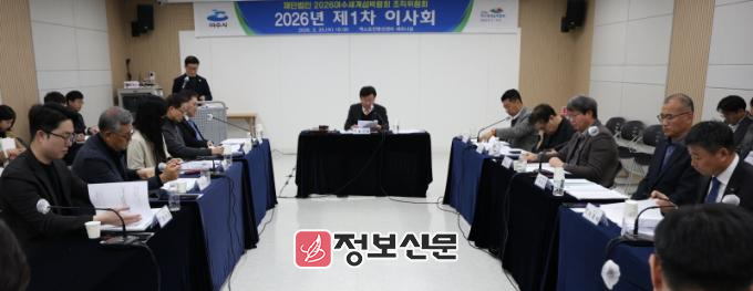 ![]() ▶ (재)2026여수세계섬박람회 조직위원회(공동위원장 김영록 전남도지사, 정기명 여수시장, 박수관 ㈜YC-TEC회장) 2026년 제1차 이사회를 25일 여수엑스포컨벤션센터에서 개최했다. |
