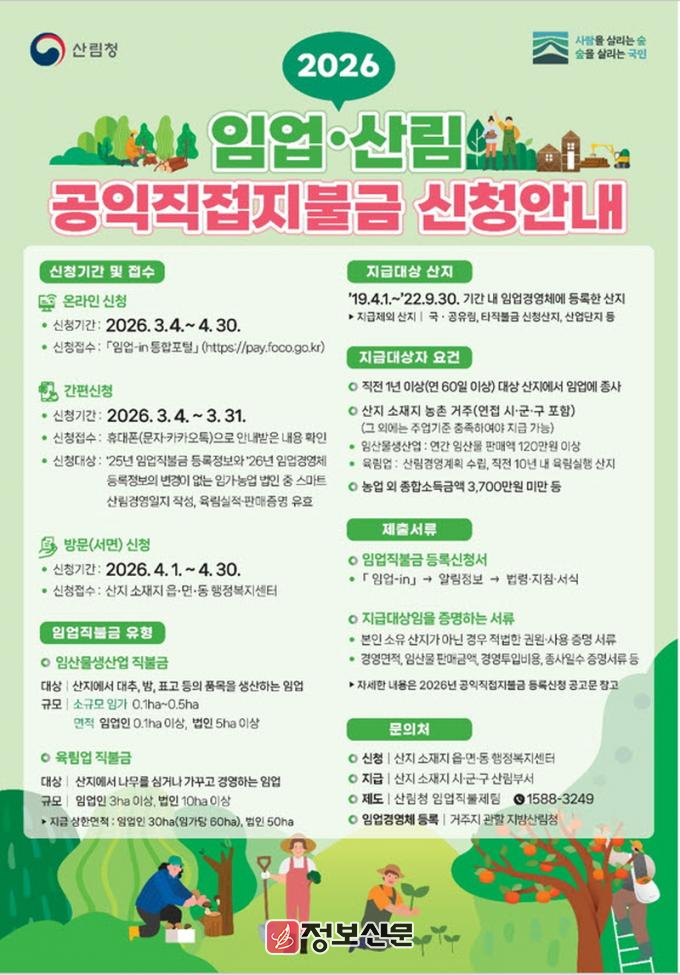 ![]() 순천시, 2026년 임업.산림 공익직접지불금 신청 접수 실시 |