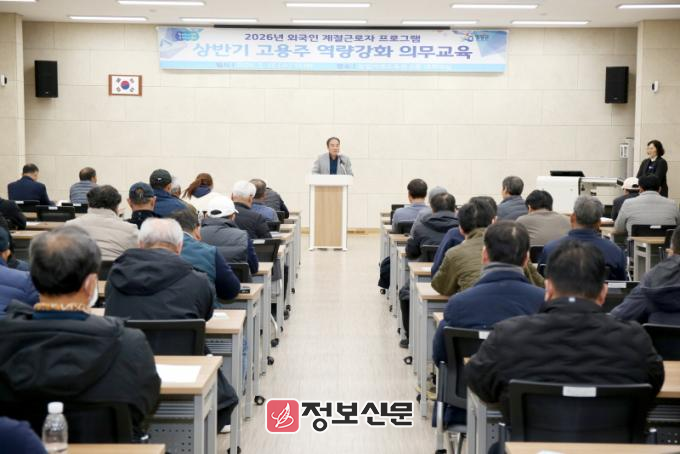 이번 교육은 2026년 상반기 고용주 121명과 각 읍면 담당자를 대상으로 진행되었으며 계절근로 프로그램 운영 지침을 안내하고 개정된 내용을 중심으로 현장에서 발생할 수 있는 문제점을 사전에 예방하기 위해 마련됐다.