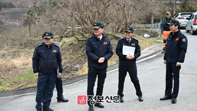 이어 소방서에서 주요 업무를 보고받은 최 본부장은 산림과 인접한 주거지 및 전통 사찰 등 화재 취약 대상에 대한 예방 대책을 심도 있게 논의했다. 특히, 평상시 건조한 날씨에는 주민들이 비상소화장치로 마을 주변에 미리 물을 뿌리도록 안내하되, 실제 산불 발생 및 확산 시에는 무리한 진압을 시도하기보다 신속한 대피와 119 신고가 최우선임을 명확히 교육할 것을 주문했다.
