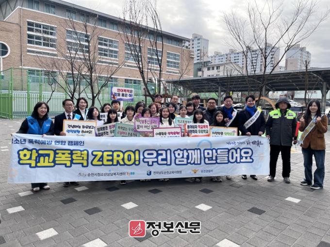 이날 캠페인은 순천경찰서, 순천교육청, 참수리어머니회, 자율방범대, 청년회의소(JCI), 교사-학생회 등 70여명이 참석해“사랑이 넘치는 학교, 교실마다 웃음 가득”예방 문구가 적힌 피켓을 들고 등교하는 학생들을 맞이하며 적극적인 관심과 실천을 당부하는 홍보활동을 전개했다.