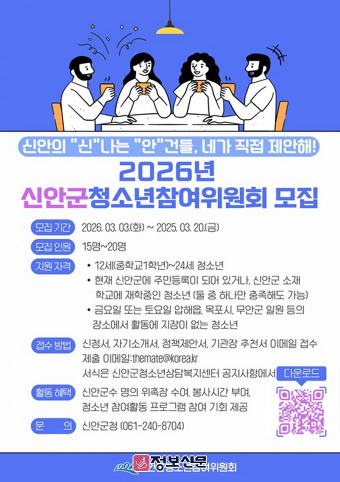 ![]() 신안군, 2026년 청소년참여위원회 위원 모집 |