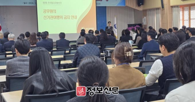 이번 교육은 제9회 전국동시지방선거를 앞두고 공무원의 정치적 중립 의무를 되새기고 업무 추진 과정에서 발생할 수 있는 위법 행위를 사전에 예방하기 위해 마련됐다.