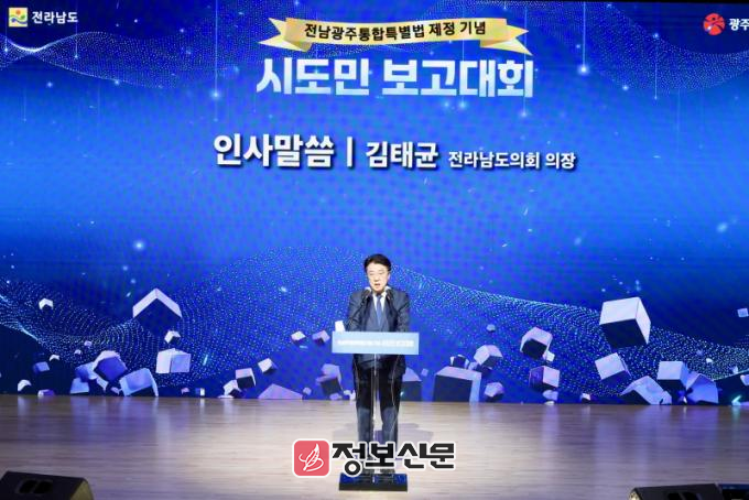 ![]() 김태균 전라남도의장, 「전남광주통합특별시 설치를 위한 특별법」 제정 기념 시도민보고회 참석 |
