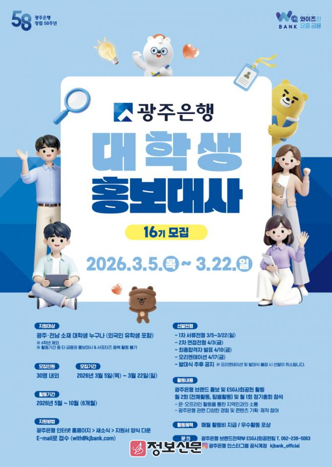![]() 광주은행, 제16기 대학생 홍보대사 모집 |