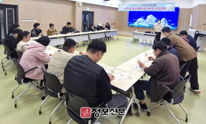 이날 모임에는 보건소 등록 장애인과 가족 20명이 참석해 알로에 등 천연원료를 활용한 기초 화장품 만들기 체험을 진행했다.